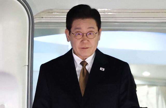 일본 순방 일정을 마친 이재명 대통령이 14일 경기 성남 서울공항에 도착해 공군1호기에서 내려오고 있다. / 뉴스1