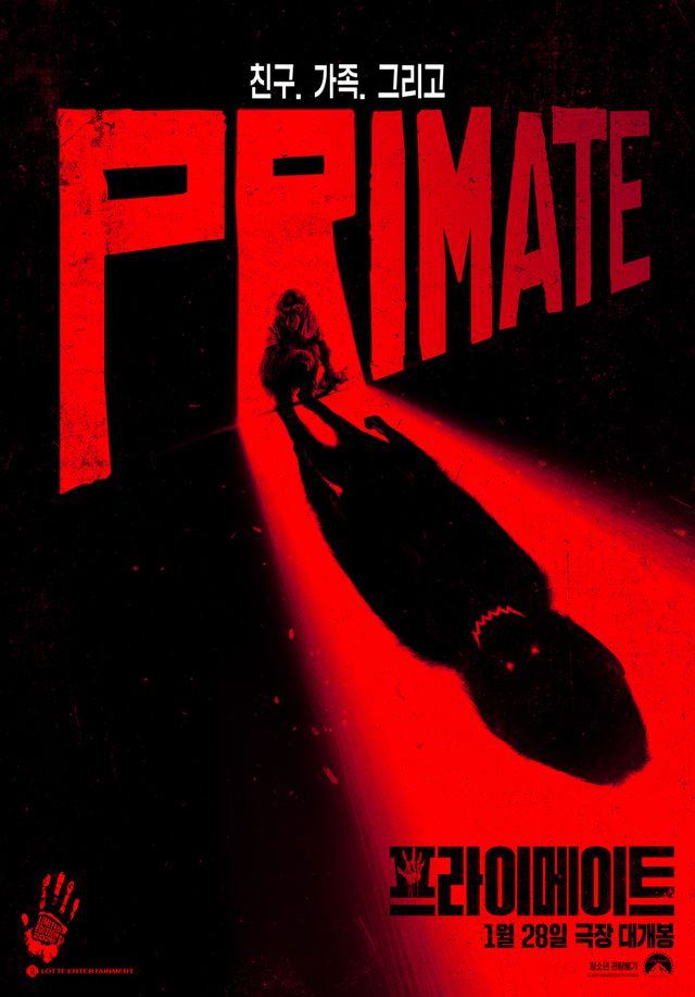 이날 공개된 포스터는 ‘프라이메이트’의 붉은색 영제 아래 자리한 벤의 모습과 길게 드리운 그림자로 강렬한 인상을 남긴다. 친구이자 가족이었던 반려 침팬지 벤의 야생적 본능이 깨어나며 펼쳐질 극한의 공포를 예고해 관객의 호기심을 자극한다.