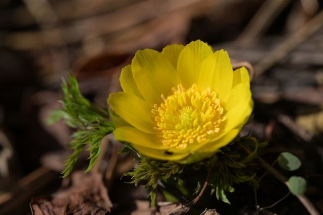 세복수초는 국내 복수초류 3종 중 제주에서만 볼 수 있는 자생식물로, 잎이 가늘고 길게 갈라지는 것이 특징이다. ‘봄의 전령’으로 불리며, 새해의 복을 상징하고 가장 먼저 노란 꽃을 피워 생명력을 전한다.