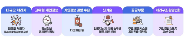 6대 분야는 △대규모 처리자 △고위험 개인정보 △개인정보 과잉수집 △신기술 △공공부문 △처리구조 환경변화다.