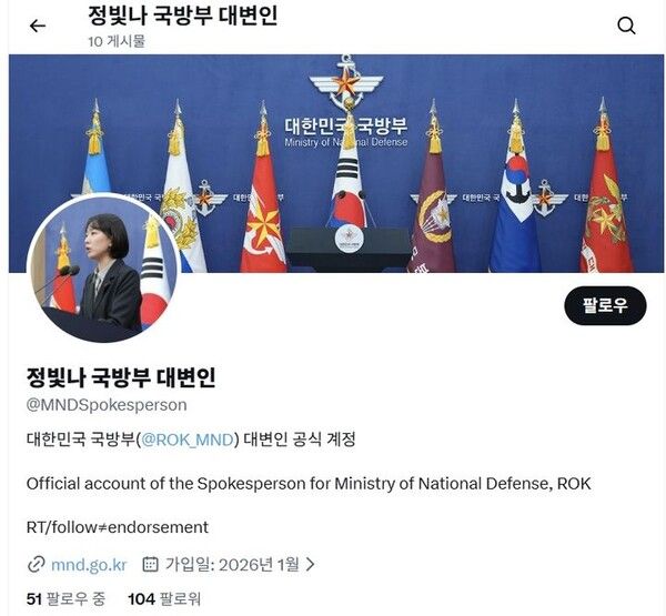 국방부는 국방부 대변인 명의의 공식 SNS(X, 구 트위터) 채널(@MNDSpokesperson)을 신규 개설하고 14일부터 본격 운영을 시작했다고 밝혔다.