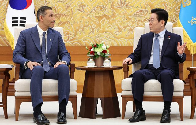 이에 칼둔 행정청장은 "제의 국가인 한국에 와서 기쁘다"며 "모하메드 대통령께서는 (이재명) 대통령님께 애정 어리고 굉장히 따뜻한 환영의 인사, 그리고 감사·안부 인사를 전해 달라고 각별하게 부탁했다"고 했다.