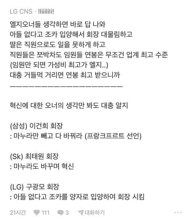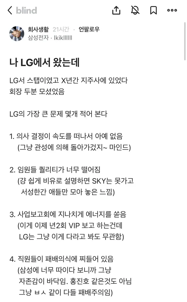 LG 출신이 말하는 LG의 문제점