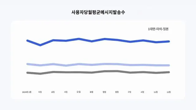 대만의 메시지수는 태국의 2배, 일본의 3배