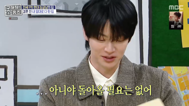 15일 방송된 MBC 예능 ‘구해줘! 홈즈’에서는 안재현이 아나운서 출신 방송인 김대호와 30대 싱글남을 위한 하우스 임장에 나서는 모습이 그려졌다.