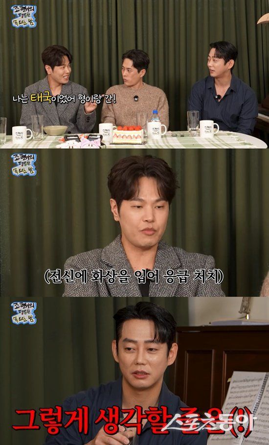 나윤권은 당시 상황도 설명했다. 그는 “태국은 제일 더운 시간에는 현지인도 안 돌아다닌다더라”며 “요트에서 바닷바람을 맞다가 더운 줄 모르고 탈의한 채 태닝을 했다”고 말했다. 이어 “테이 형이 잠이 들었는데 전신 3도 화상을 입었다. 돌아오는 길에 차에서 쓰러졌다”고 전했다.