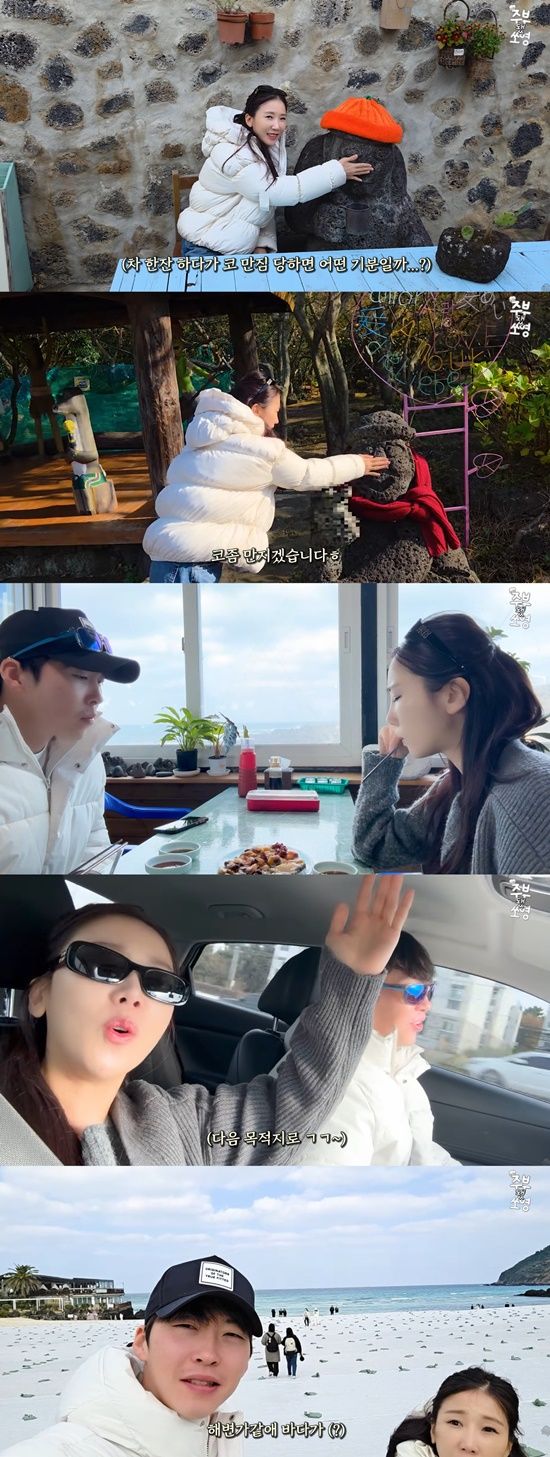 이후 두 사람은 세상에서 가장 큰 돌하루방을 찾아갔다. 문경찬은 "땅속에 묻혀 있는 것"이라며 "잘 부탁드린다"고 함께했다. 또한 두 사람은 '아기를 점지해주는 돌하루방'을 찾아갔고, 정성스럽게 코를 만지기도 했다.