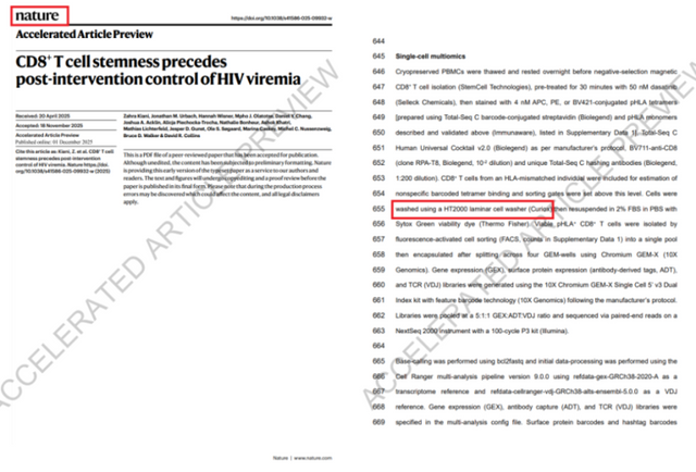 이같은 인류사에 중요한 연구에서 한국 기업의 기술이 기여한 것으로 나타났다. 인간면역결핍 바이러스(HIV)의 통제를 위한 면역표현형 및 기능 특성 분석 연구에서 큐리옥스의 자동세포세척 기술(C-FREE 기술)이 활용됐다. 네이처 본지에 한국 기업의 기술이 핵심 방법론으로 기재된 것은 이례적이라는 평가가 제기된다.