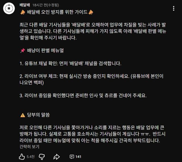 오인사격 많아지고 다른 배달기사한테 피해가 가는 상황이라 간곡히 호소중