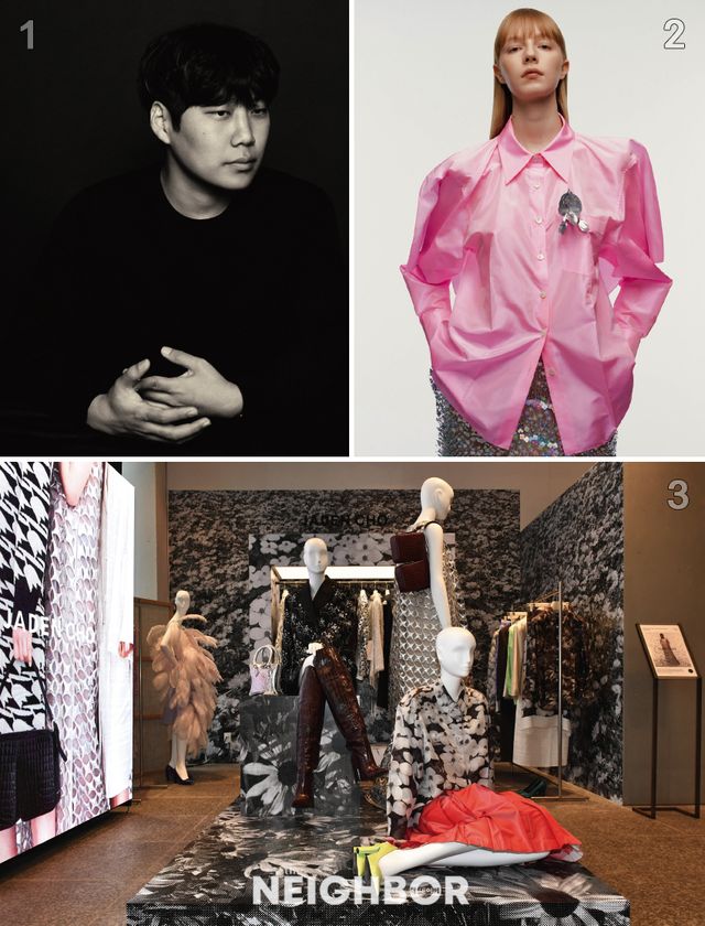 1 사진가 조기석이 촬영한 제이든 초의 조성민. 2 ‘01. Encore’ 컬렉션 룩. 3 비이커 청담점에서 열린 제21회 SFDF 우승자 제이든 초 전시 전경.