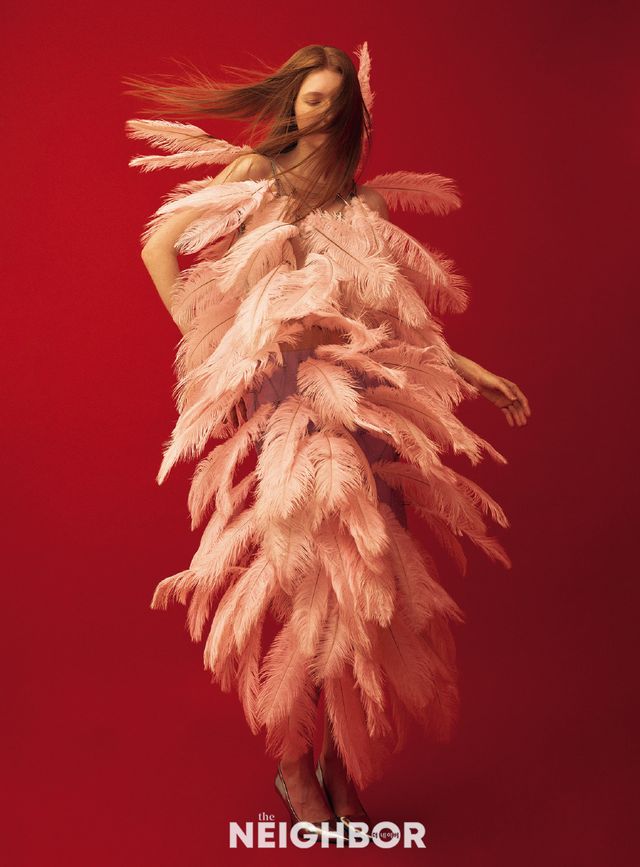 디자이너에게 영감의 원천을 묻는 게 다소 식상하고 무의미할 수 있죠. 하지만 흔히들 사용하는 꽃 모티프를 제이든 초의 시선으로 재해석하는 방식을 보고 있자면, 그런 감각과 감성은 어디로부터 오는 걸까 궁금했어요. 구체적인 방법에 대한 이야기라기보다 제이든 초라는 세계를 형성하는 배경에 관한 궁금증이었던 것 같아요. 사실 컬렉션을 준비할 때 뭘 찾지 않는 편이에요. 스스로는 게으르다고 표현하는데, 학생 때부터 지금까지 리서치를 잘 하지 않아요. 그냥 ‘나 이거 해야 할 것 같아’라는 시작점이 어디선가 생겨요. 평소 제가 먹고, 살고, 친구들과 다니면서 수집한 이미지나 쌓여 있던 것들이 어느 순간 내면에서 뭉치는 때가 있거든요. 그게 오리지낼리티라 생각해요. 물론 다 출처가 있는 ‘점’의 요소들이지만 그것이 모여 어떤 입체가 됐을 때 비로소 컬렉션이 시작되는 것 같아요. 그리고 소재가 메인이다 보니 구상적인 사물이나 대상보다 추상적인 것에서 영감을 많이 얻고요. 항상 감정, 기분 등을 시각화하고 물체화하는 것이 제 역할이라 생각해서 ‘저게 조금 더 반짝였으면 좋겠다’, ‘더 이런 느낌에 가까웠으면 좋겠다’라는 추상적인 언어로 팀원들과 소통해요. 디자이너들에게도 비주얼 레퍼런스를 잘 주지 않으려 하고요. 처음 5~6벌은 제가 시작하고 ‘이런 소재와 색인 것 같아’, ‘이렇게 시작해보자’ 제시해요. 그러고 3개월쯤 지나면 어느새 행어가 다 채워져 있더라고요.