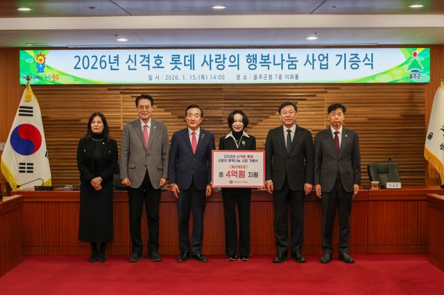 롯데삼동복지재단은 지난 15일 울주군청 이화홀에서 ‘2026년 신격호 롯데 사랑의 행복나눔 사업 기증식’을 열었다.