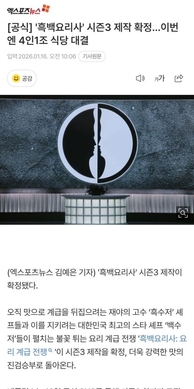넷플릭스는 16일 ‘흑백요리사: 요리 계급 전쟁’ 시즌 3 제작을 확정하고, 이날부터 참가자 모집을 시작했다.