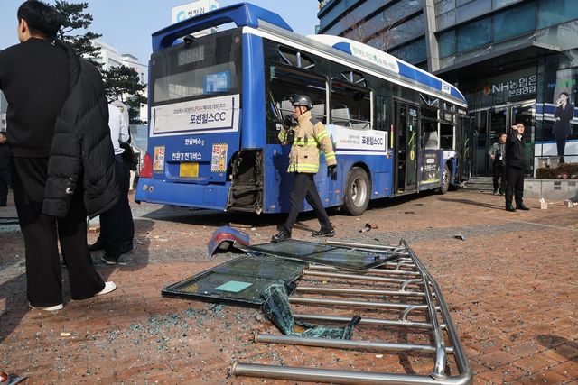 사고를 낸 시내버스는 운행 도중 도로 옆에 있는 인도를 가로질러 농협 건물로 돌진한 것으로 확인됐다. 현재까지 파악된 부상자 4명 중 1명은 위독한 상태로 전해졌다.