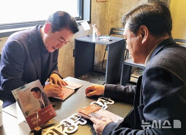 김동근 경기 의정부시장이 16일 청년 소상공인이 운영하는 지역의 한 카페에서 저서 '의정부 해결사' 출판기념회 개최했다.