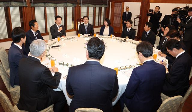 끝으로 이 대통령은 "대외 관계, 국가 안보나 외교상의 문제에 대해서는 가급적 힘을 모아 달라"며 "지금까지도 많이 협조해 주신 것도 분명한데 조금 더 부탁드리고 싶다"며 참석자들에게 당부했다.
