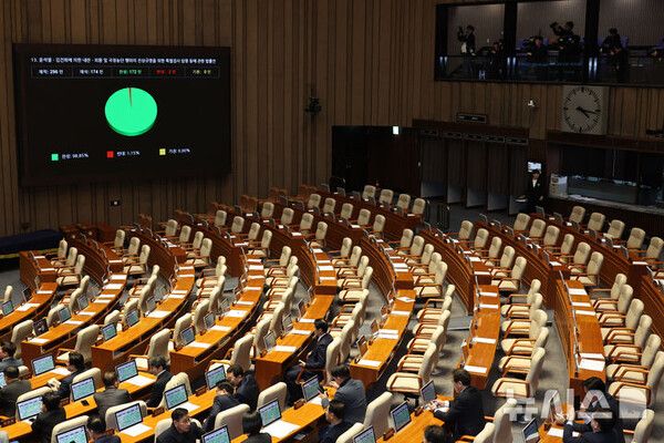 국회는 이날 본회의에서 재석 의원 174명 중 찬성 172명, 반대 2명으로 '2차 종합 특검법(윤석열·김건희에 의한 내란·외환 및 국정 농단 행위의 진상 규명을 위한 특검법) 수정안'을 처리했다.