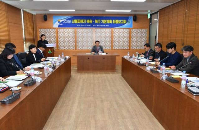 이번 보고회는 지난해 3월 발생한 온양과 언양 산불 관련 피해 복구 추진현황을 점검하고 향후 계획을 논의하기 위해 마련됐다.