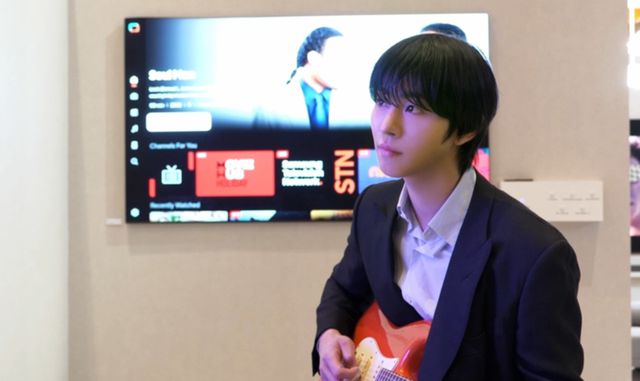 또, 삼성 TV와 세계적인 악기 브랜드 펜더(Fender)의 협업으로 탄생한 ‘펜더 플레이 TV’앱도 체험했다. 안효섭은 전시존에 비치된 기타로 연주를 선보였다. 그는 “이렇게 TV를 통해 손쉽게 기타 연주를 배울 수 있게 된다면 다시 취미로 기타 연주를 시작해보고 싶은 마음이 들었다”고 전했다.