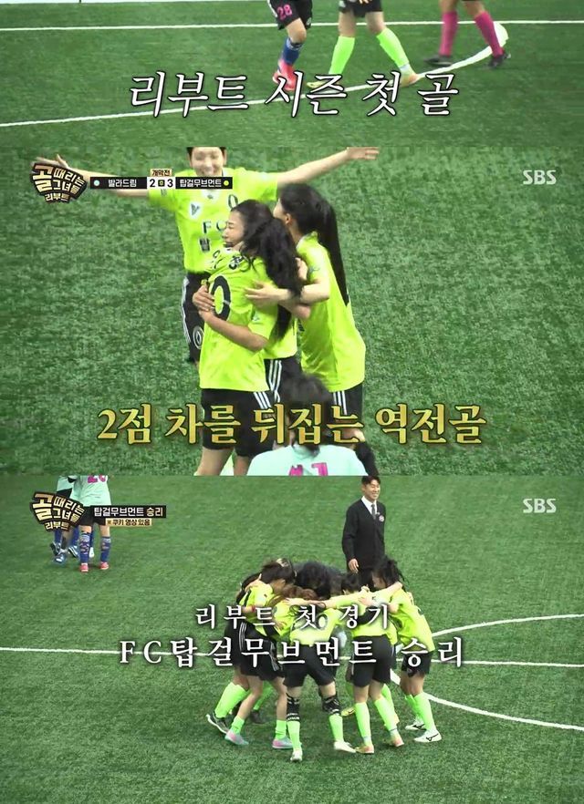 이 같은 변화는 지난 14일 방송된 리부트 시즌 개막전에서도 그대로 드러났다. ‘FC탑걸 무브먼트’와 ‘FC발라드림’의 맞대결에서 탑걸은 0대 2 열세를 뒤집고 후반 연속 3골을 터뜨리며 대역전승을 거뒀다.