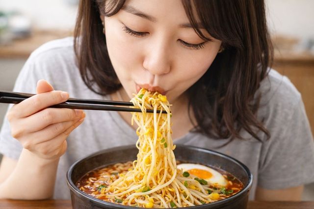 콩나물라면을 맛있게 먹는 모습. 기사 이해를 돕기 위해 AI를 활용해 제작한 자료 사진입니다.