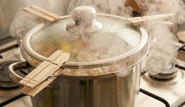 이 방법의 핵심은 냄비와 냄비 뚜껑 사이에 의도적으로 작은 틈을 만들어 주는 데 있다. 나무로 된 빨래집게를 냄비 뚜껑 가장자리에 세 개 정도 균등하게 끼우면 뚜껑이 냄비에 완전히 밀착되지 않고 자연스럽게 떠 있는 상태가 된다.