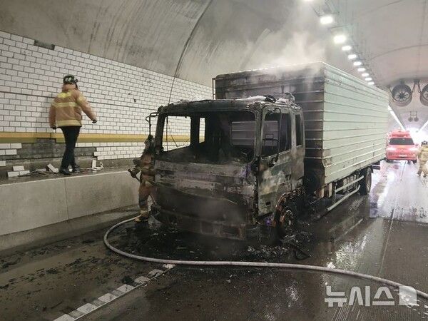 뉴시스 보도에 따르면, 17일 경북소방본부에 따르면 이날 오전 10시28분께 당진영덕고속도로 영덕방향 안평2터널 입구에서 5t 화물차 화재로 도로가 통제됐다.