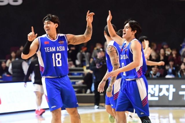 이 두 그룹이 '팀 아시아'와 '팀 루키'라는 이름으로 17일 서울 잠실실내체육관에서 진행된 올스타전 전야제에서 자존심 대결을 펼쳤다. 40세와 41세로 현역 최고참인 허일영(LG)과 함지훈(현대모비스)이 각각 팀 루키와 팀 아시아의 감독을 맡았다.