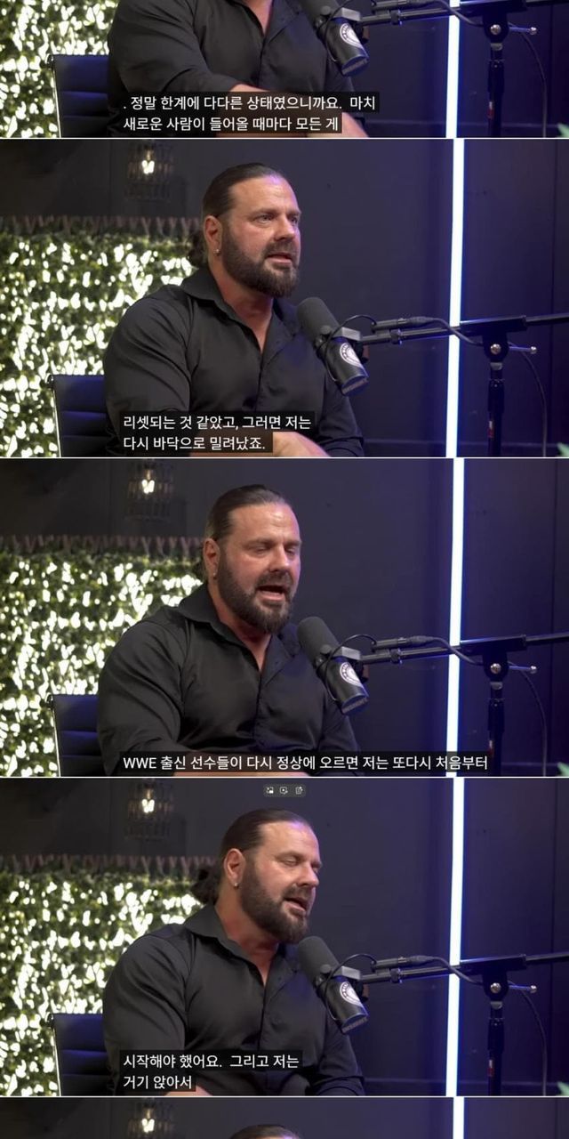 푸쉬 받을만 하면 자꾸 새로 영입된 선수들에게 기회가 가고 그러다가 WWE 출신 선수들이 계속 정상을 차지하게 되는 상황들이 계속되자