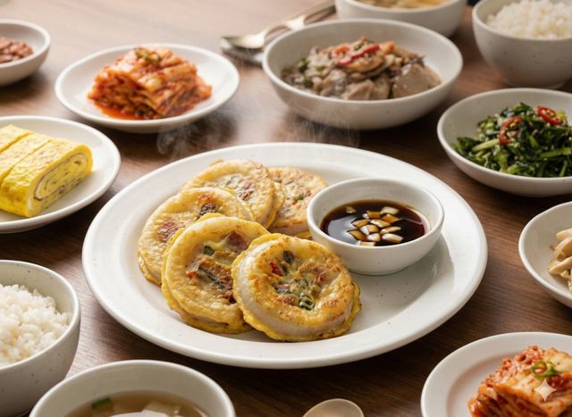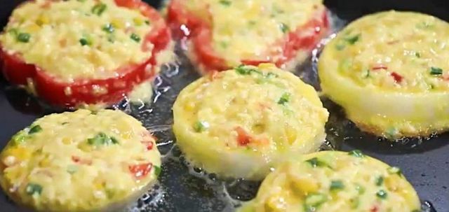 굽는 단계에서도 작은 요령이 있다. 반죽물을 통째로 묻히는 대신, 기름을 두른 팬에 양파 링을 먼저 올린다. 불은 중약불이 적당하다. 링 안쪽에 숟가락으로 속 재료를 채워 넣고, 가장자리가 잡히면 뒤집는다. 처음부터 센 불을 쓰면 양파는 덜 익고 겉만 탈 수 있다. 약불에서 천천히 익히면 양파의 단맛이 살아난다.