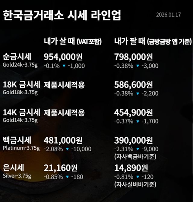 순금(24K) : 매입가 95만 4000원 / 매도가 79만 8000원
