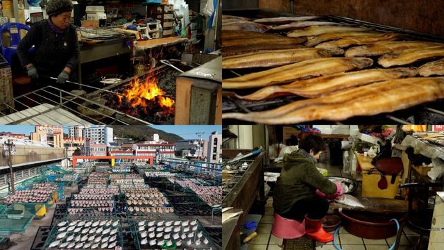 100년이 넘도록 노릇한 생선 냄새가 가득한 전라남도 고흥 전통시장의 숯불 생선구이 거리에서는 새벽 5시부터 불 피우기 작업이 한창이다. 수십 년 경력의 김효순 씨는 대나무 숯을 골프채로 깨 불씨를 골고루 만들고, 불이 너무 세지 않도록 재로 덮어 온도를 조절한다. 약불로 은근히 익혀야 생선이 타지 않고 속까지 익는다는데! 굽는 동안에는 3시간 넘게 불 앞을 오가며 세기를 조절해야 해서 앉기도, 한눈을 팔기도 어렵다고 한다. 오직 손으로 해야 하기에 뜨거운 육즙이 장갑 안으로 스며들면 손이 붉게 부어 물집이 잡히기 일쑤! 생선 굽기만큼이나 까다로운 생선 손질! 도매상을 통해 생선을 받으면 곧바로 비늘을 제거하고, 내장을 빼는 손질에 들어간다. 이 과정만 2시간 넘게 소요되는데, 펄을 먹고 자란 생선은 아가미에 펄이 가득 차 있어 굽기 전 세척도 꼼꼼히 해야 한다. 간이 골고루 배도록 또다시 약 3시간의 염장을 거친 이후에는 생선 굽는 과정 역시 만만치 않다. 반건조 작업은 더 고되다. 공용으로 사용되는 옥상 건조장에 손수 수레를 끌고 오르막을 올라 차곡차곡 생선을 널어야 한다. 충분히 말려야지 굽는 과정에서 생선이 터지는 것을 막을 수 있어 최대 4~5일까지도 말린다고 한다. 이때 물이 잘 빠지도록 생선의 입이 아래로 향하게 널어두는 것이 핵심이다. 겨울에는 특히 눈이 오면 하루 만에 생선이 마르지 않아서 천으로 덮어야 하고, 눈이 쌓이면 다시 털어내야 한다. 그때마다 수레를 끌고 하루에도 수십 차례 건조장을 오르내려야 하는데! 상회 대부분이 오랜 세월 장사를 이어온 만큼, 장기간 반복 동작으로 손과 허리, 관절 부담이 누적되어 작업이 쉽지 않다. 그럼에도 손님들이 맛있다는 한마디를 남기면 그간의 피로가 풀린다는데... 뜨거운 불 앞을 지키는 숯불 생선구이 거리의 현장을 따라가 보자.