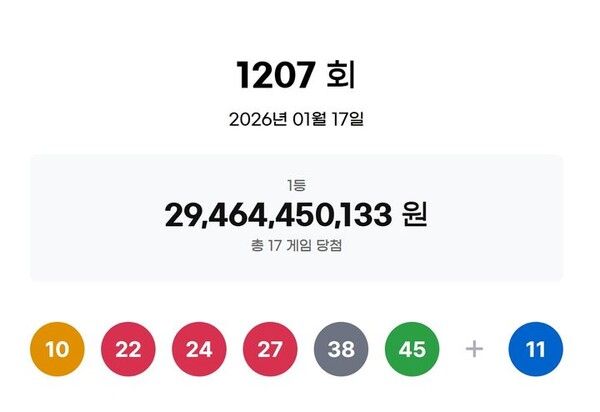 17일 제1207회 동행복권 로또 추첨 결과 10, 22, 24, 27, 38, 45가 1등 당첨 번호로 결정됐다. 2등 보너스 번호는 11이다.