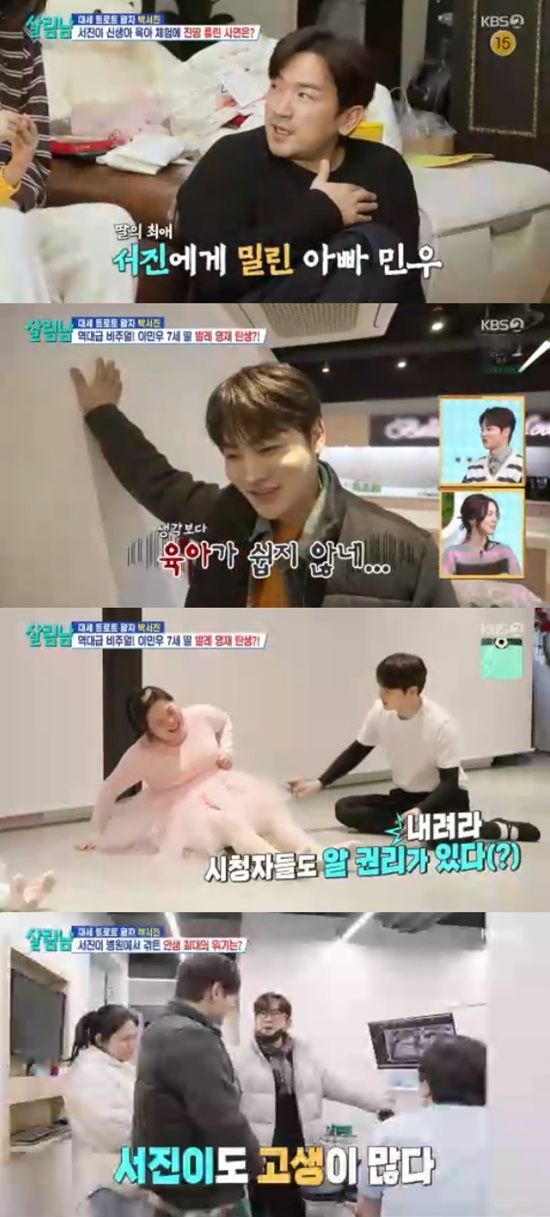 17일 방송된 KBS 2TV '살림하는 남자들 시즌2'에서는 박서진이 이민우 딸 육아에 도전하는 모습이 전파를 탔다.