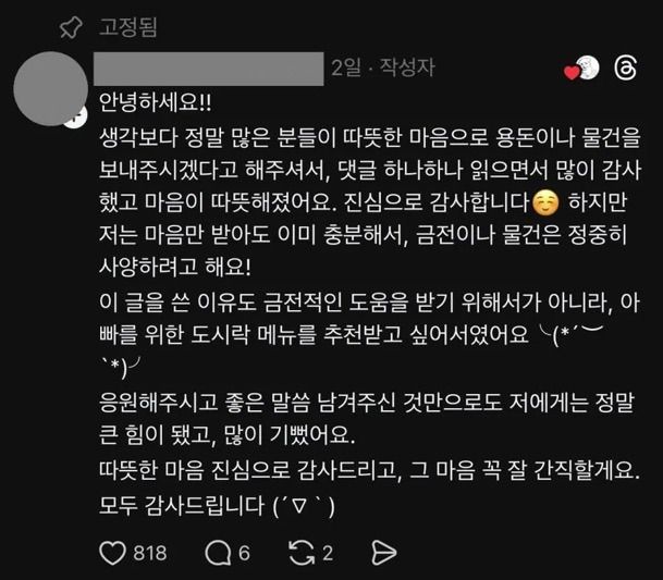 최근 한 SNS 스레드(Threads)에는 "아빠가 택배 일을 하시는데 요즘 부쩍 많이 힘들어 보이신다"는 중학생의 글이 게시되었습니다. 작성자는 "조금이라도 도움이 되고 싶어서 도시락을 싸드리려 한다"며, 아버지가 알레르기 없이 무엇이든 잘 드신다는 정보를 덧붙였습니다.