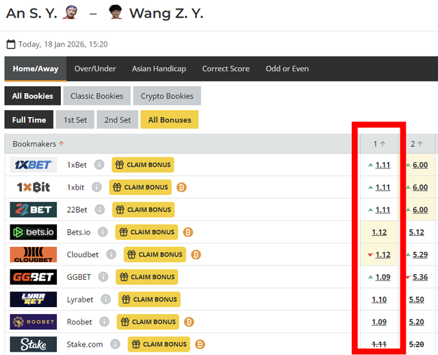 스포츠 배팅매체 '오즈포털'에 따르면, 몇몇 배팅업체들은 안세영의 승리 배당을 1.11로 매겼다.