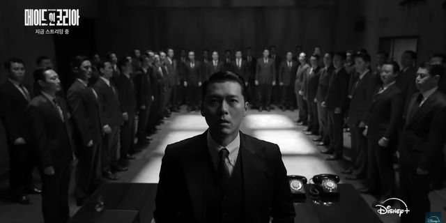 '메이드 인 코리아'에서 권력과 부를 쫓는 중앙정보부 요원 백기태 역을 완벽하게 소화한 배우 현빈 / 디즈니+