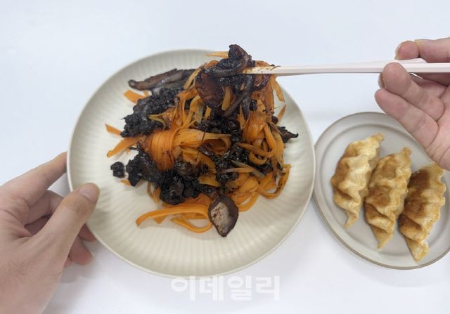 맛은 의외로 짜장면에 가까웠다. 당근 특유의 단맛은 배경으로만 은은히 남고, 메인 풍미는 다짐육의 고소함과 춘장·된장이 어우러진 짭조름한 감칠맛이 주도했다. 당근은 일정 굵기로 잘 찌면 면치기가 가능할 정도로 유사한 식감을 낸다. 쫄깃함은 부족하지만 오히려 느끼하지 않고 끝맛이 가볍다. 당근보다는 소스 존재감이 훨씬 강해, 먹다 보면 짜장면을 먹고 있다는 착각이 든다.