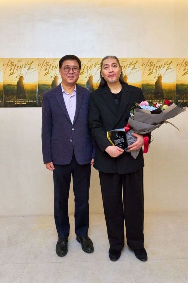 최휘영 문화체육관광부 장관이 40년간의 가수 생활을 마무리하는 가수 임재범에게 공로패를 수여했다.
