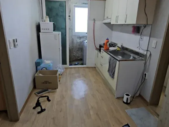 방수 공사 안해서 흐르는 물