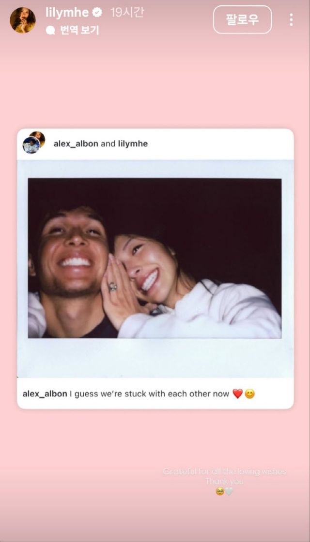 알본 역시 같은 날 자신의 SNS에 “이제 우리는 함께하게 됐다”는 글을 남기며 약혼 소식을 알렸다. 두 사람은 2019년부터 교제를 이어온 것으로 알려졌다.