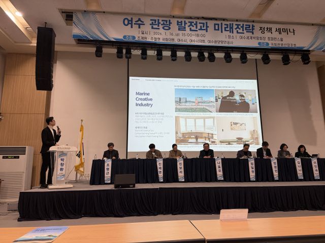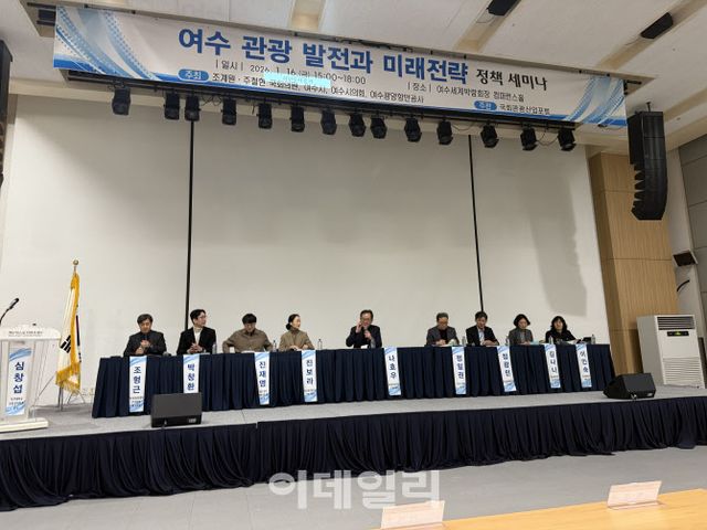 [여수(전남)=이데일리 김명상 기자] 여수가 풍부한 해양·섬 관광 자원을 전략적으로 활용해 지역 관광의 질적 전환을 이루기 위한 방안이 모색됐다. 지난 16일 여수세계박람회장 컨퍼런스홀에서 열린 ‘여수 관광 발전과 미래 전략 정책세미나’는 해양·섬 관광과 마이스(MICE) 산업을 연계한 질적 성장 방안을 집중 논의하고, 여수를 남해안 핵심 관광 거점으로 도약시키기 위한 중장기 전략을 모색하는 자리로 진행됐다.