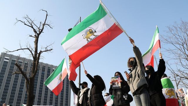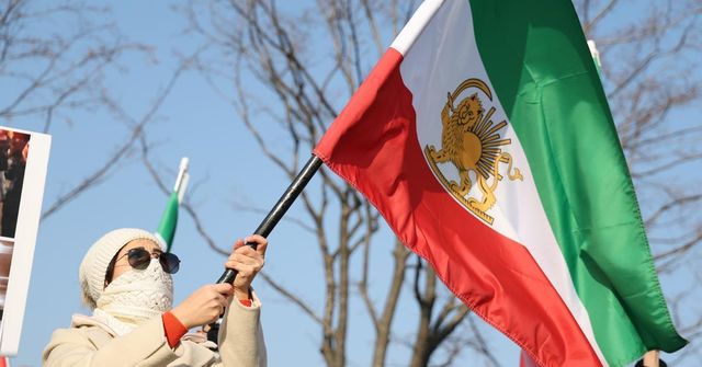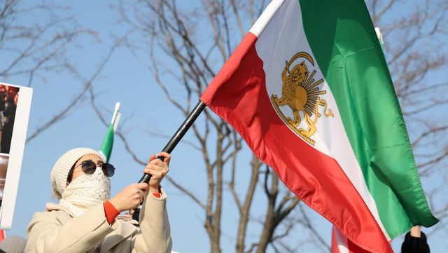 지난 17일 서울 종로구 광화문광장 인근에서 내한이란인 네트워크가 연 미국 정부의 이란 군사 개입 촉구 집회에서 참가자들이 팔레비 왕조 시절 이란 국기를 흔들고 있다. / 연합뉴스
