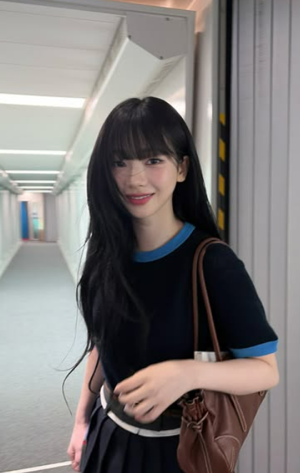특히 눈길을 끈 것은 그녀의 스타일링이다. 카리나는 블루 배색이 포인트인 네이비 반소매 니트에 짙은 색 치마를 매치해 차분하면서도 세련된 ‘프레피 룩’을 완벽하게 소화했다. 여기에 자신이 앰배서더로 활동 중인 브랜드의 브라운 가죽 가방을 매치해 고급스러운 무드를 더했다.