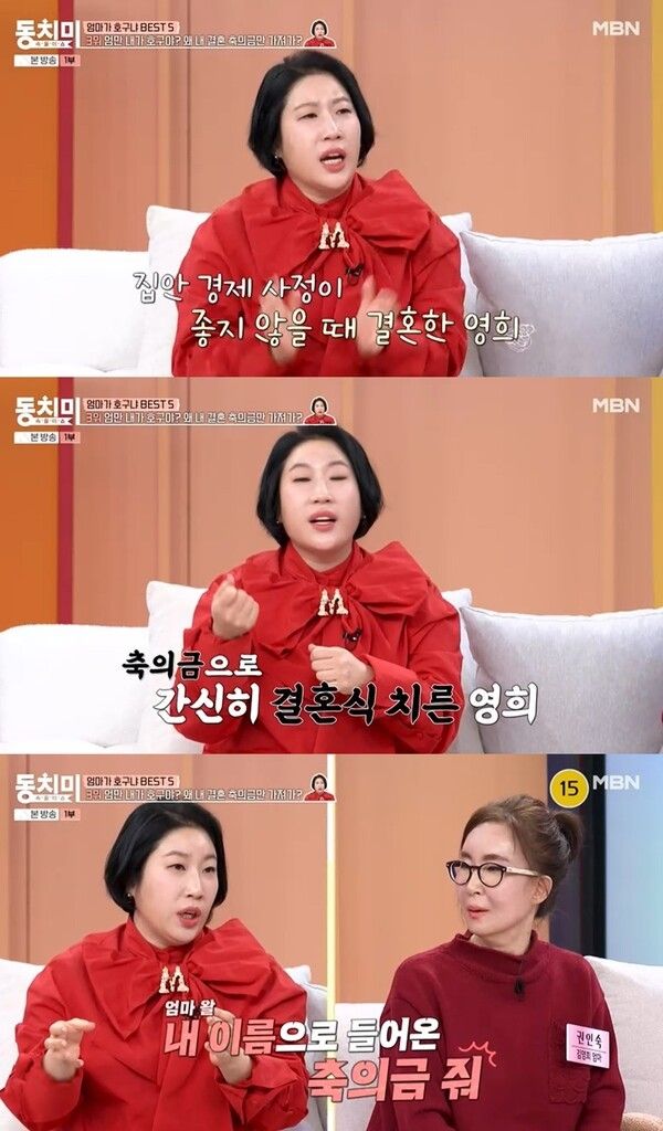 지난 17일 방송된 MBN 예능 프로그램 속풀이쇼 동치미에서는 엄마가 호구냐라는 주제로 가족 간의 금전 관계에 대한 솔직한 담론이 펼쳐졌다. 이날 출연한 김영희는 자신의 결혼식 당시 겪었던 경제적 어려움과 그 과정에서 어머니에게 느꼈던 서운함을 가감 없이 털어놨다.
