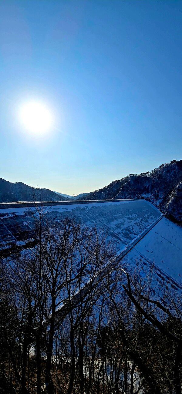 파란 하늘 사이로 비쳐 든 태양은 날카롭지 않은 빛으로 거대한 댐과 주변 산자락을 부드럽게 감싸 안았다.