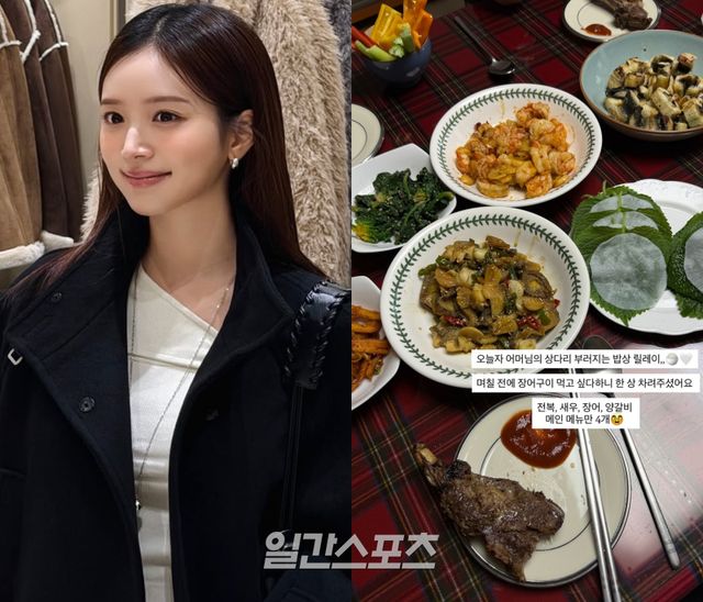 공개된 사진에는 전복, 새우, 장어, 양갈비 등 푸짐한 음식이 가득 담긴 밥상이 담겨 있어 눈길을 끈다. 임신 중인 김지영을 위해 정성껏 준비된 특급 식사가 따뜻한 가족애를 전했다.
