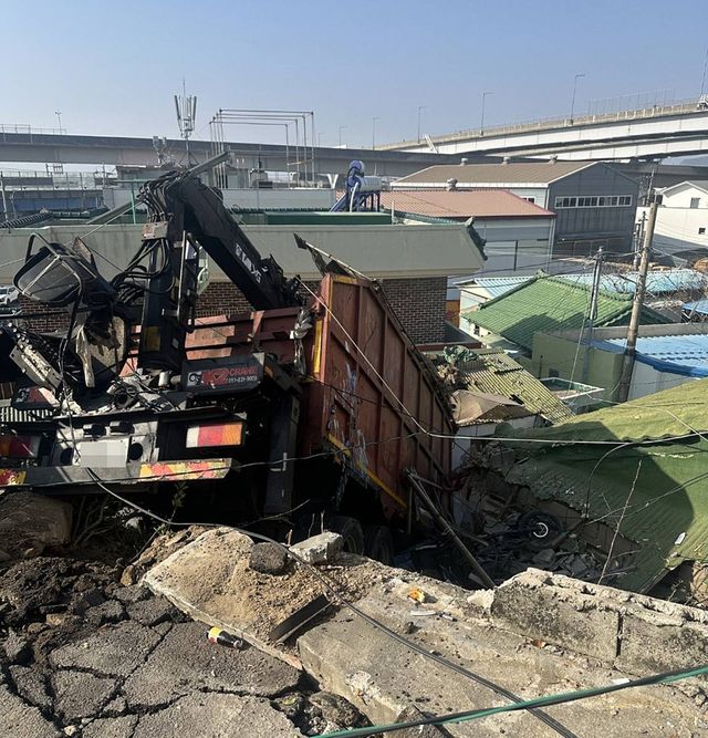 이 사고로 내리막길에 주차돼 있던 차량 1대와 전신주 1대, 난간 아래에 있던 주택 일부가 파손됐다.