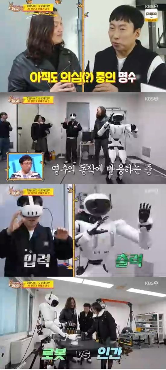 한재권 교수는 박명수와 예원에게 한국형 휴머노이드 로봇이 공장 자동화의 모습을 연출하는 것을 보여줬다.