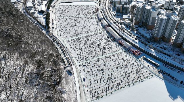 하늘에서 바라본 화천산천어축제 / 뉴스1